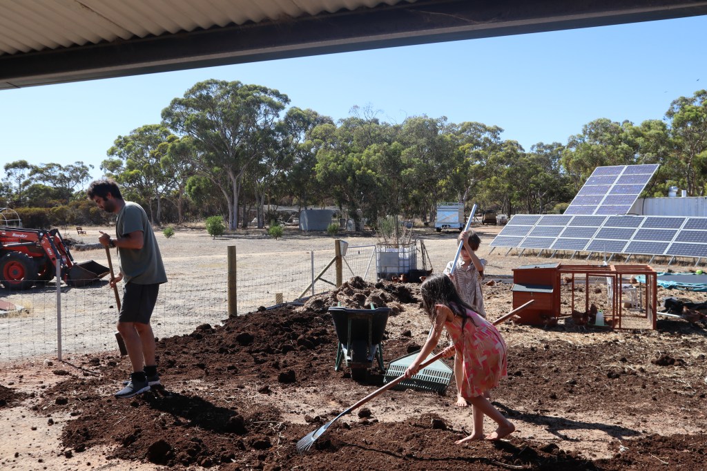 My husband and eldest son and daughter getting stuck into the layering up of inputs; manure, hay and woodchips.