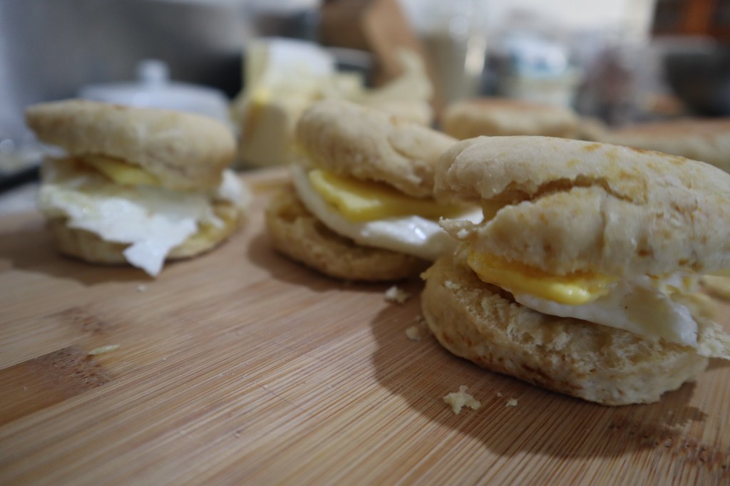 These were our egg and cheese English muffins and they were wonderful, the first time I cooked them I cooked them like scones in the oven and it was an odd experience, still nice but odd. The next time I fried the muffin and it was exactly what you’d expect from a tasty sourdough English muffin.